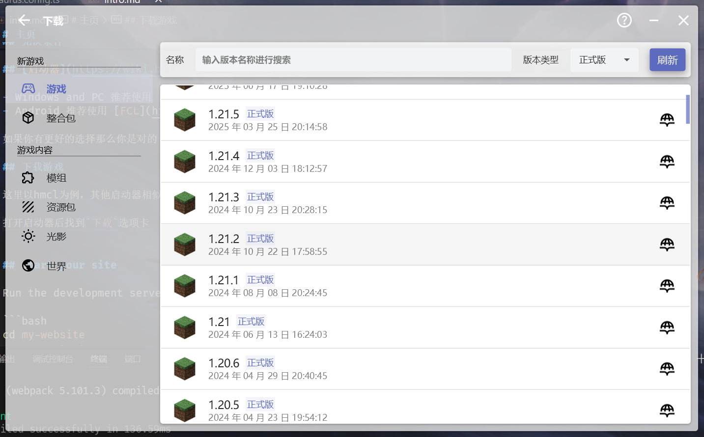 这里以hmcl为例,其他启动器相似但略有不同请自行研究